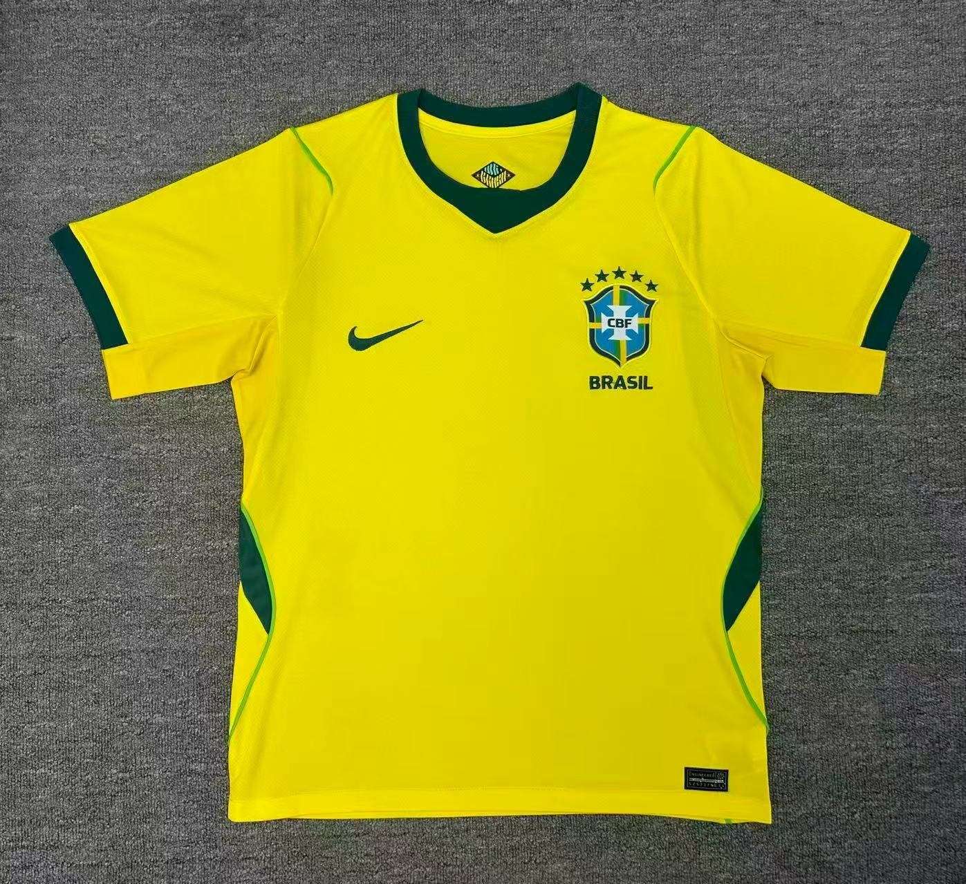 CBF Pride: The iconic Brazilian Football Confederation (CBF) crest sits proudly on the chest, topped by the five stars representing their record five World Cup titles.