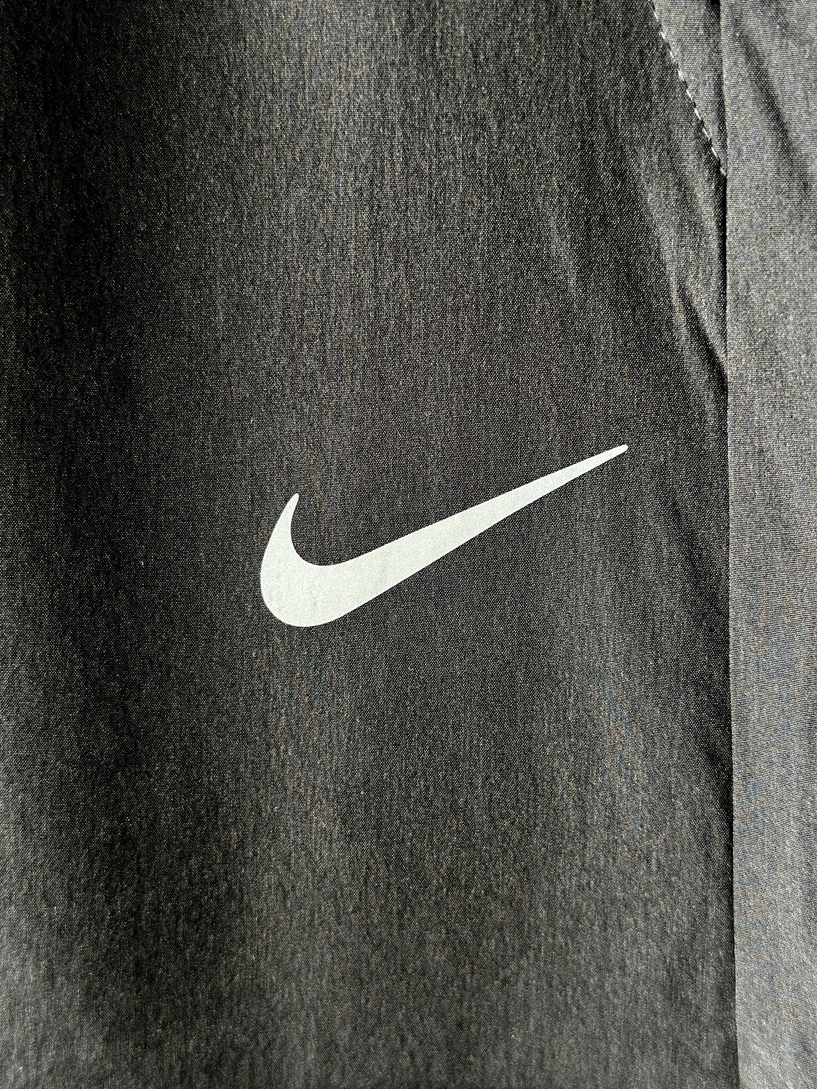Signature Branding: Features the iconic Nike Swoosh in a high-contrast reflective white on the left hip.
