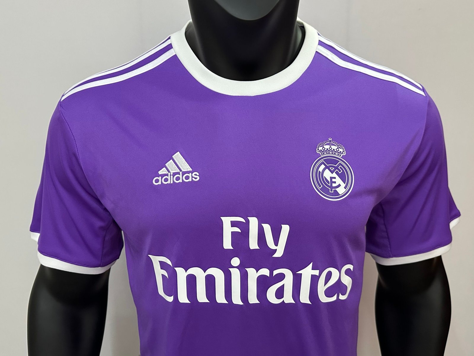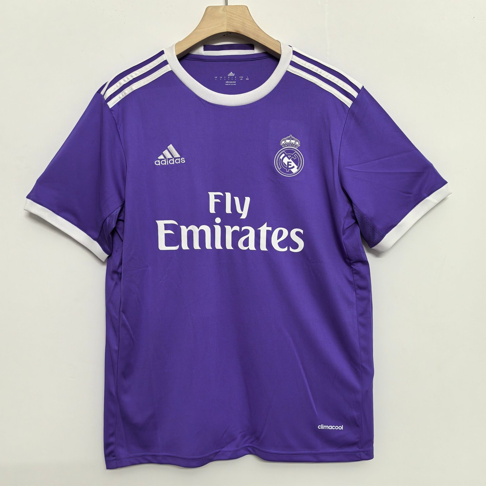 Relive the night Real Madrid conquered Europe for the 12th time with this legendary 2016-17 Away Kit. This bold purple design is inseparable from the images of Cristiano Ronaldo celebrating in Cardiffโhis hair cut short, a brace on the scoreboard, and the trophy in his hands.