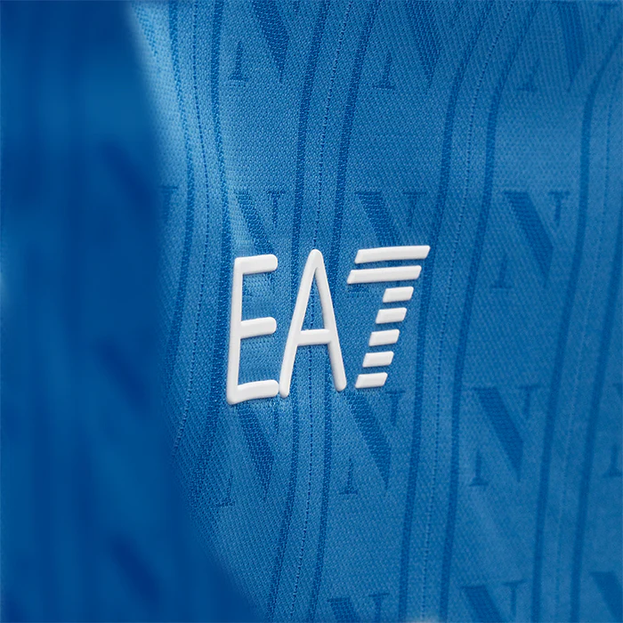 The SSC Napoli home shirt for the 2025/2026 season is an elegant tribute to the Azzurri tradition, revisited with a modern style and refined details that enhance its prestige, embellished with the tricolor shield in the center of the chest, symbol of the title of Italian Champions won in the 2024/2025 season.